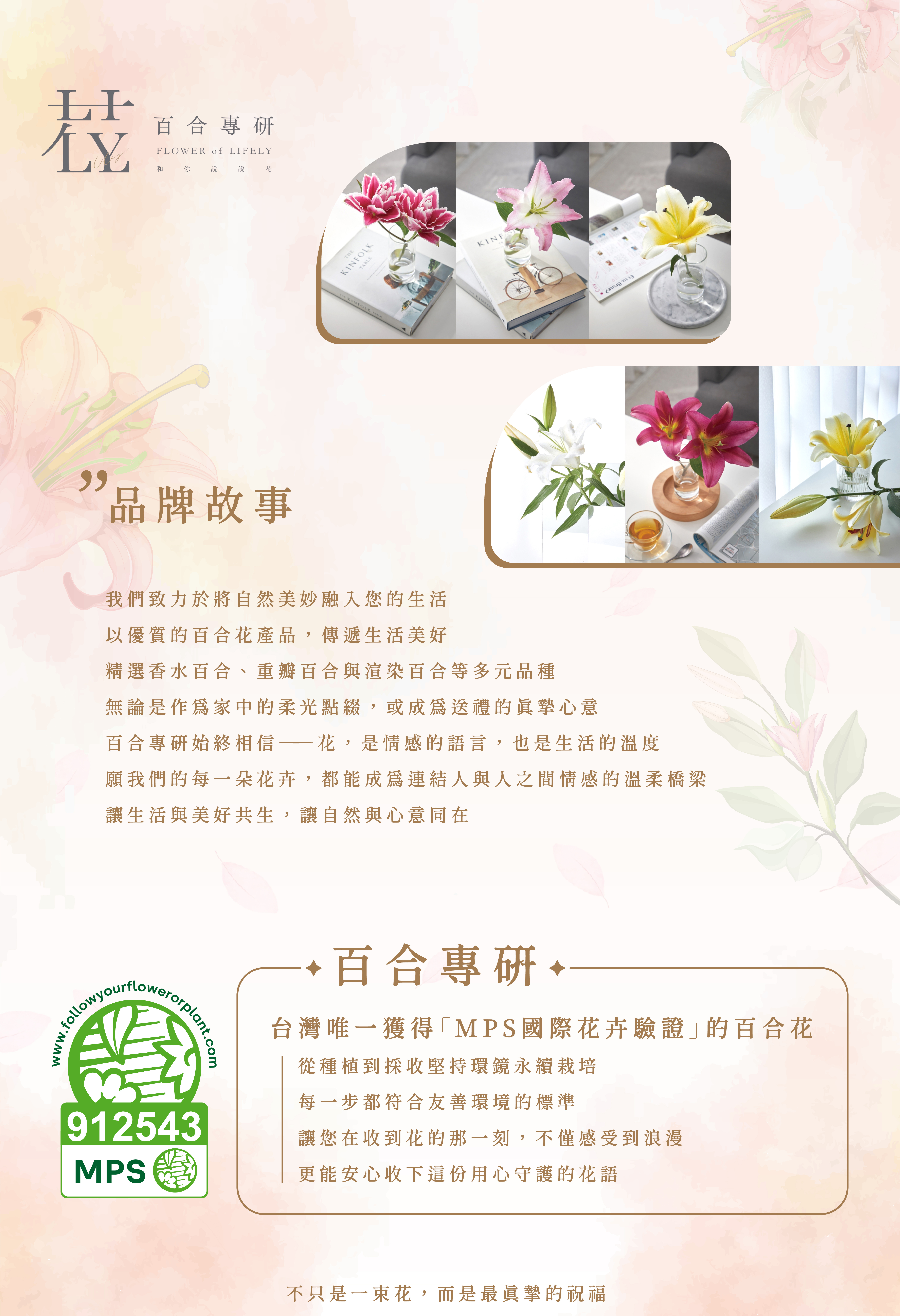 *台灣唯一榮獲荷蘭「MPS花卉永續驗證標章」的百合花品牌
