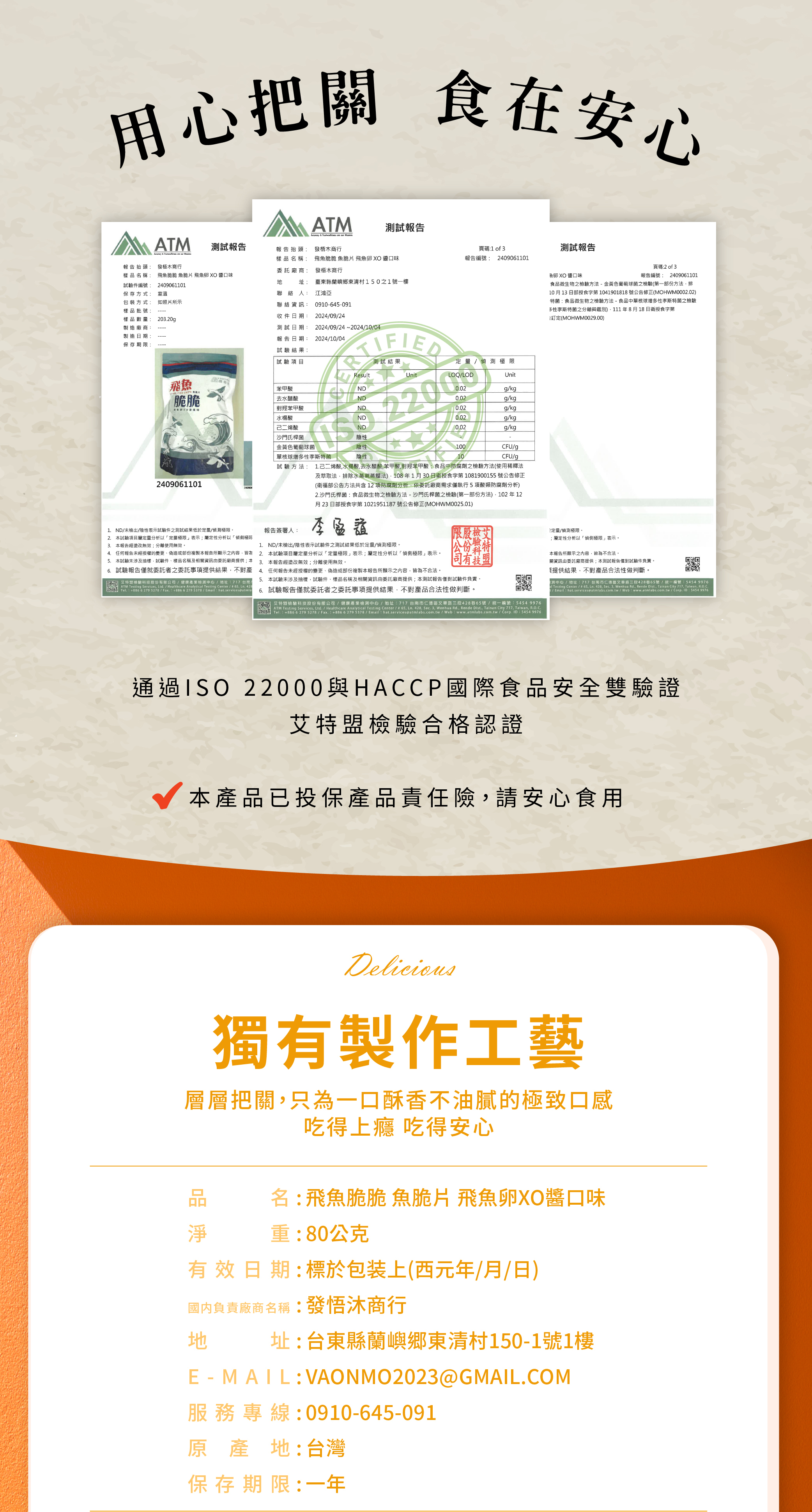 ✓通過多樣產品檢驗、ISO 22000與HACCP食品安全高標準。